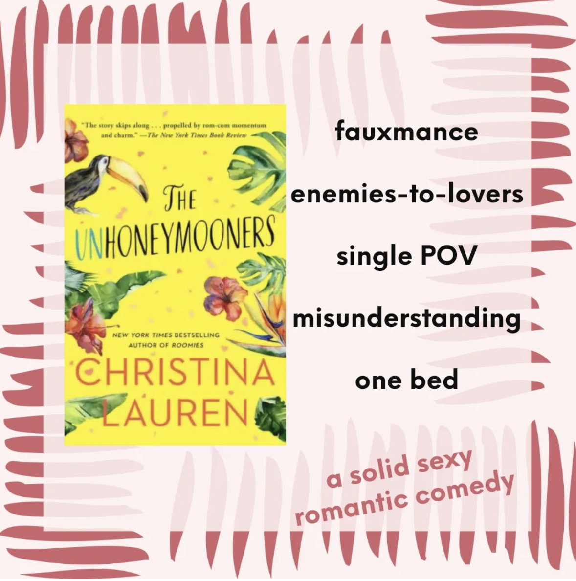 Another point for my friend Kaitlin for the amazing romance recs. This was my first experience with Christina Lauren, and I did not know how much I loved the fauxmance trope. Also - there's only one bed? ... perfection.